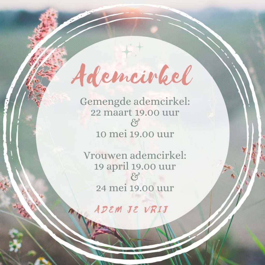 Ademcirkel: Een ademervaring is gericht op ontspanning en heling. Door een verbonden ademhaling wordt het zelf herstellend vermogen van je lichaam aangesproken. Hierdoor kunnen emoties, pijn en spanningen in je lichaam voelbaar worden. Het accepteren van dat wat er is, aanwezig zijn in je lichaam en in het moment doet blokkades opheffen waardoor energie weer […]